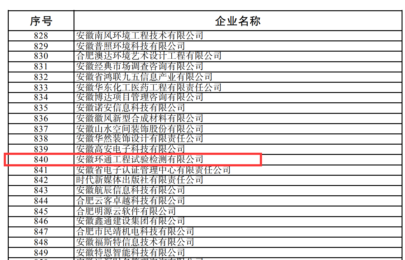 近日,安徽省經濟與信息化廳公布了2023年度安徽省創新型中小企業名單(第一批),安徽環通工程試驗檢測有限公司榜上有名。