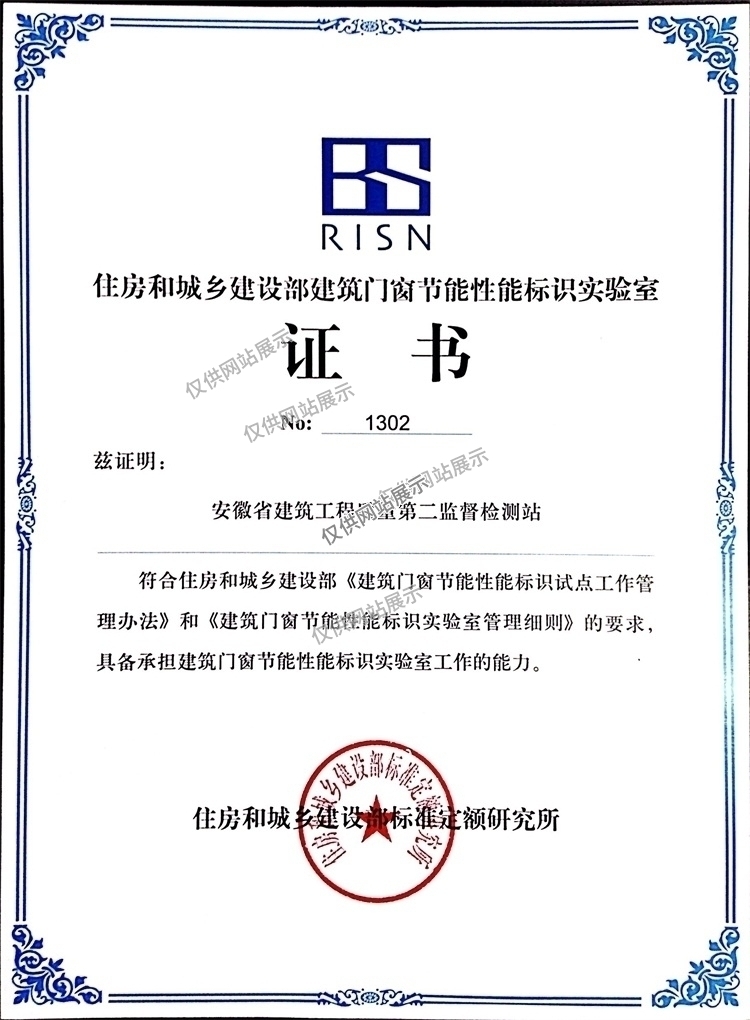 住房和城鄉(xiāng)建設(shè)部門窗節(jié)能性能標識實驗室證書
