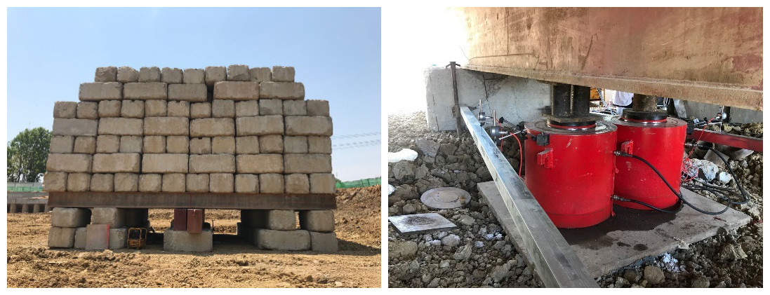 根據甲方工期要求,復工復產后需要盡快對該工程1#樓工程樁進行靜載試驗。面對具有單樁噸位大、可利用場地小、工期緊、施工難度高的特點,且正值疫情防控的關鍵期和企業(yè)復工的高峰期,各類安全風險交織疊加,安全生產面臨的形勢比以往更加復雜嚴峻,地基所臨危不懼,決定“跑步”進場,積極安排人員對施工現場進行勘察,在充分做好疫情防控工作的基礎上,經反復論證、精心組織,現場檢測人員從2020年4月18日起,連續(xù)通宵奮戰(zhàn),終將1600噸配重及設備順利運送至檢測現場,于2020年4月20日順利完成該工程3根工程樁最大試驗荷載1300噸的單樁豎向抗壓靜載試驗。
